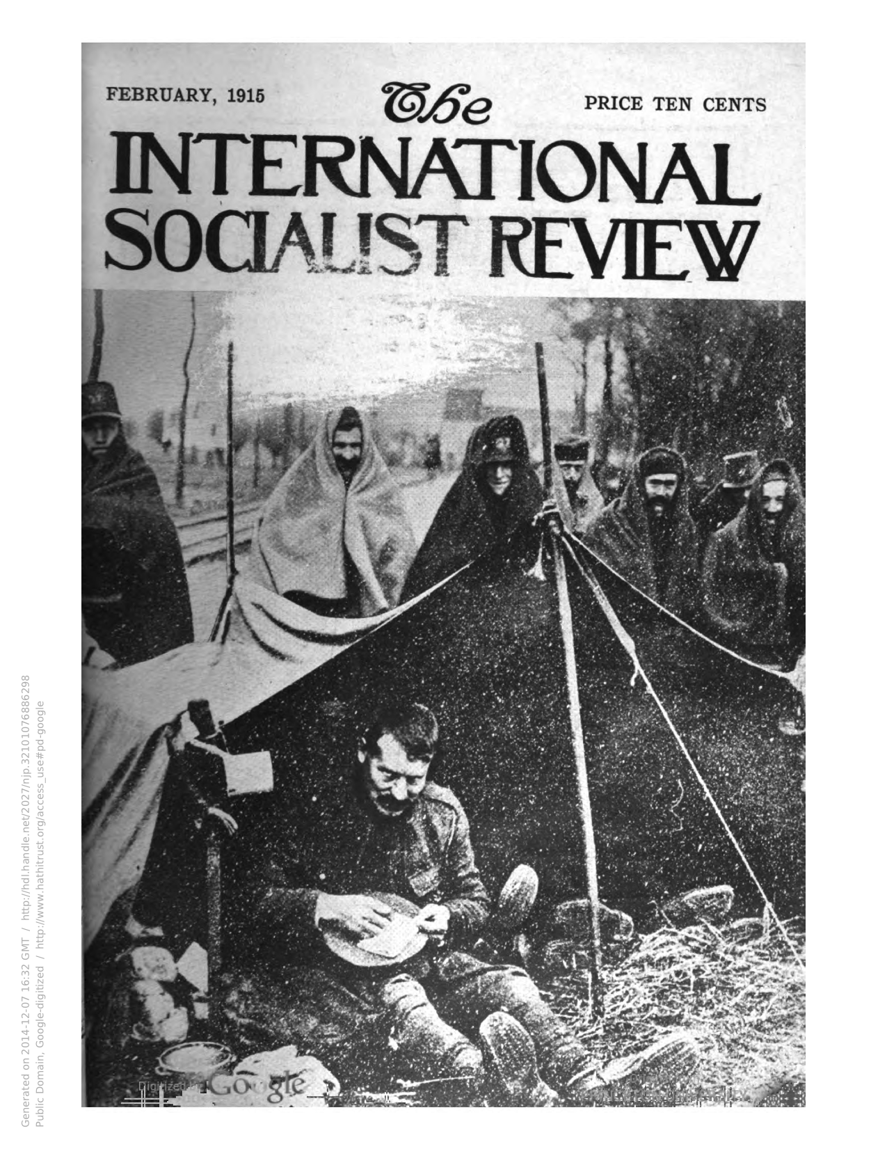 One Hundred Years Ago: February 1915 February 1, 2015 · by contributingeditor A selection of U.S. left journal covers from February 1915. All images come from the HathiTrust Digital Library. Cover illustration by Frank Walts Cover Photograph: Belgian Soldiers in Winter Quarters “The Gunman—On guard to see that property remains stolen.” The journal of the Intercollegiate Socialist Society Rate this:Like Loading... Related